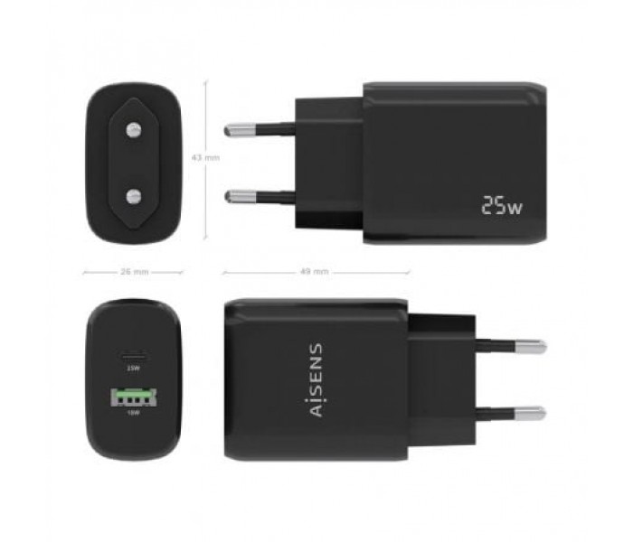 Cargador de Pared Aisens A110-0759/ 1xUSB Tipo-C/ 1xUSB/ 25W