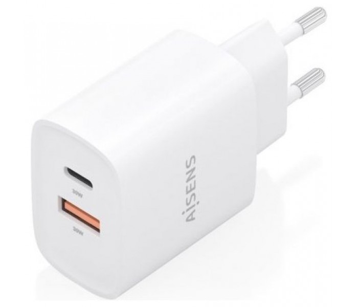 A110-0952 – Cargador GaN 30W, 1xUSB-C PD3.0 QC4.0, 1xUSB-A QC3.0, Blanco