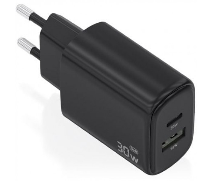 AISENS - CARGADOR GaN 30W, 1xUSB-C PD3.0 QC4.0, 1xUSB-A QC3.0, NEGRO