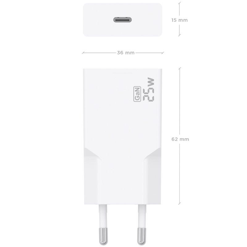 Cargador ultra delgado GaN USB-C 25W para cargar portátiles, móviles, cámaras y tablets etc. Diseño muy elegante, moderno y práctico.