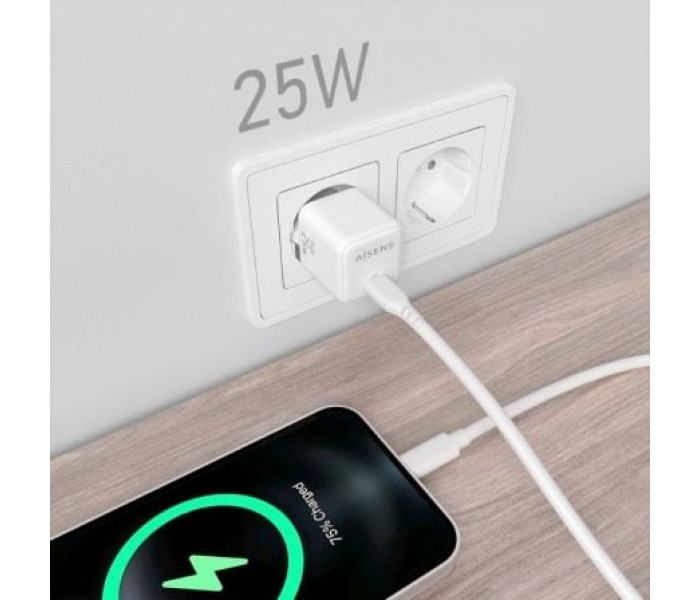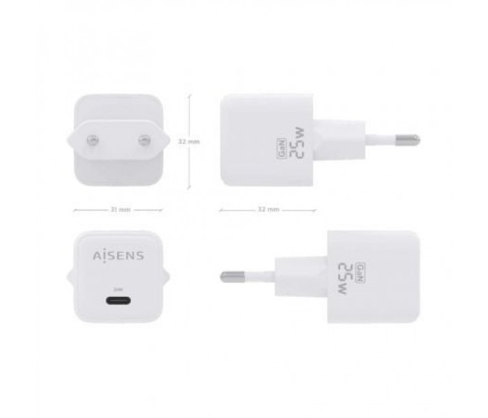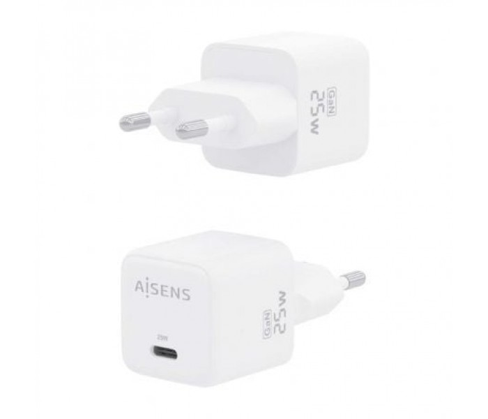Cargador de Pared GaN Aisens ASCH-25W1P012-W/ 1xUSB Tipo-C/ 25W