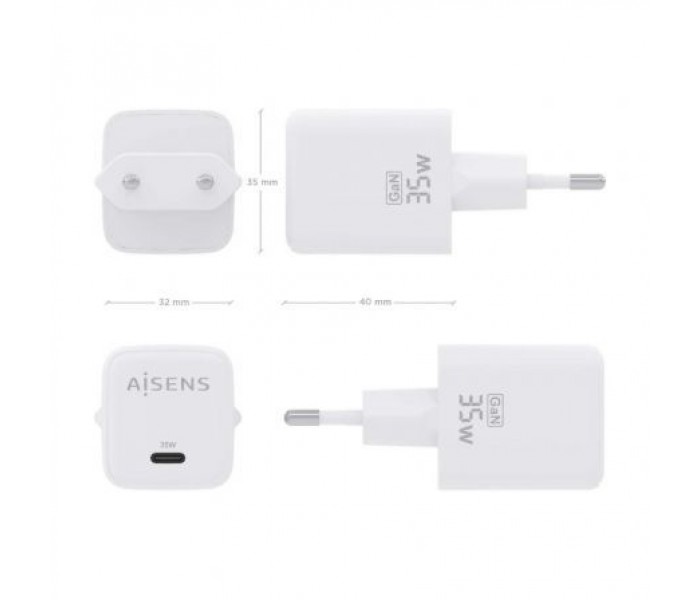 Cargador de Pared GaN Aisens ASCH-35W1P016-W/ 1xUSB Tipo-C/ 35W