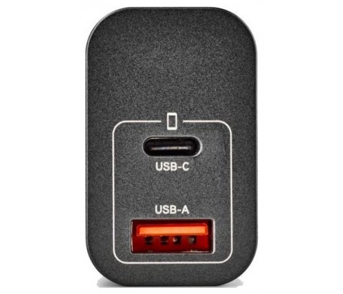 - Cargador GaN de pared con una salida USB-C (PD & PPS) y una salida USB-A QC 3.0 de 20W de potencia máxima.