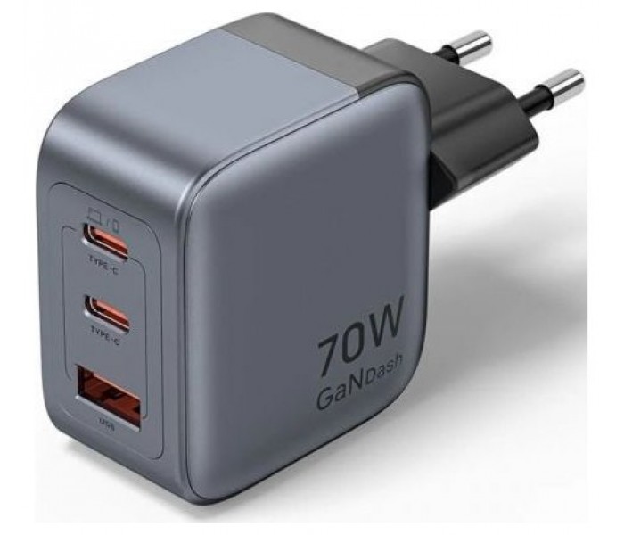 • Nombre: Cargador GaN USB de 3 puertos (C+C+A) (70W/70W/22,5W) enchufe EU gris