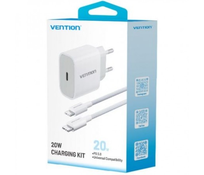 Vention Cargador USB-C 20W con Cable 1m G12W0-EU - Blanco