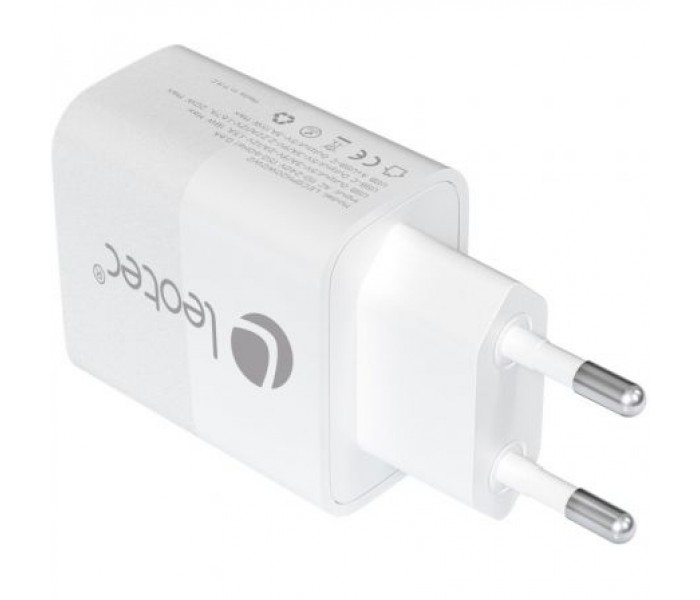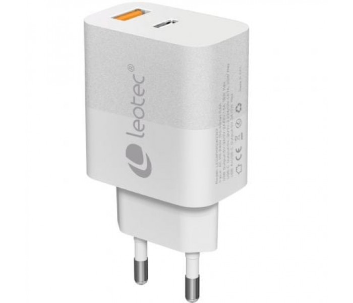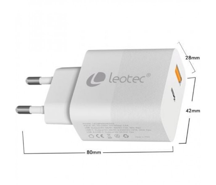 Cargador de Pared Leotec LECSPH20W2W2/ 1xUSB Tipo-C/ 1xUSB/ 20W