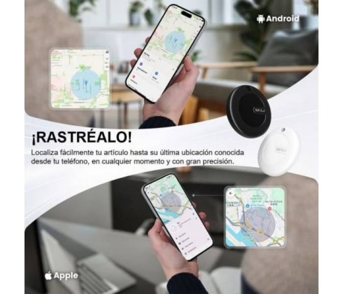 - Compatibilidad: iOS (Apple Buscar) / Android (Google Localizador)