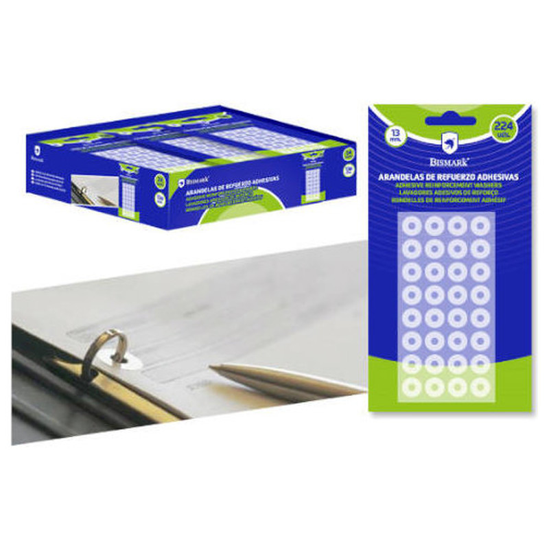 BLISTER 224 UNIDADES ARANDELAS DE REFUERZO ADHESIVAS TRANSPARENTES 13mm BISMARK 327333 (Espera 4 dias)