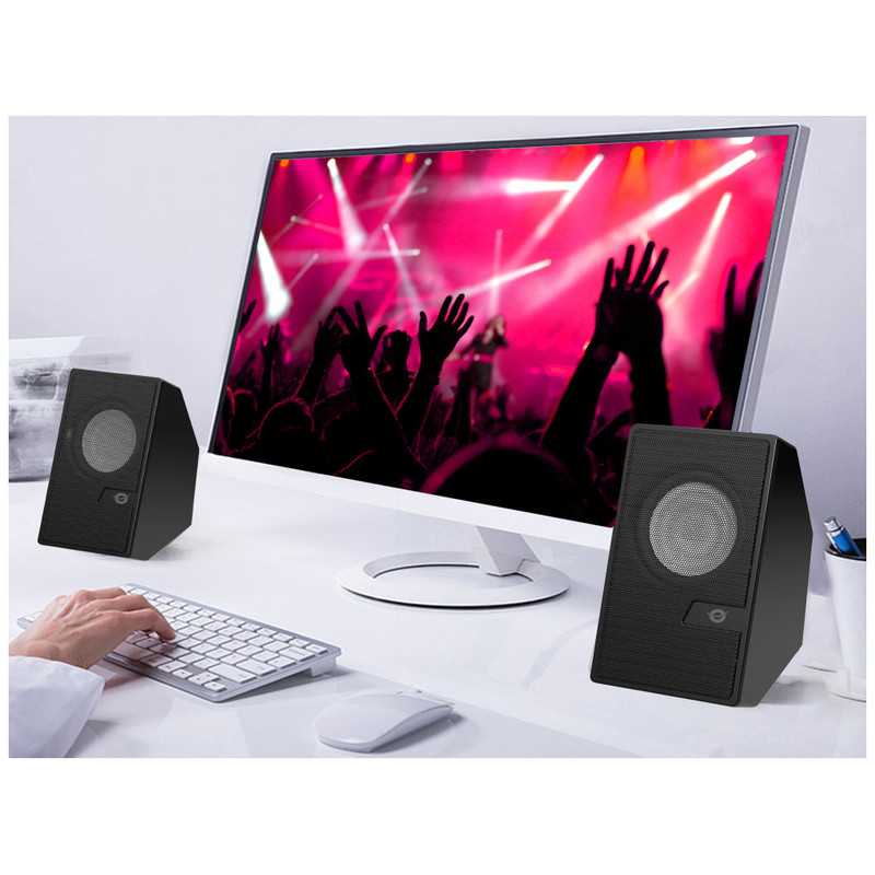 Este altavoz estéreo 2.0 ofrece un sonido potente y una reproducción sonora. A pesar del diseño que ahorra espacio, este dispositivo no compromete la calidad del sonido y produce un sistema de altavoces bien equilibrado con un sonido casi sin distorsiones. La alimentación se suministra a través del cable USB y la conexión se realiza a través de un conector jack de 3,5 mm y, por lo tanto, es adecuada para múltiples dispositivos, como una PC, una computadora portátil o un reproductor de MP3. Además, la función Bluetooth mejora la funcionalidad al permitirle reproducir música sin encender la PC o la computadora portátil. Rendimiento de audio de alta calidad Enchufe jack de 3,5 mm adecuado para PC, notebook Potencia de salida (RMS): 6W (3W x 2) Mando a distancia incluido Conectividad inalámbrica Bluetooth 5.0 Alimentado por USB Tamaño compacto, gran sonido