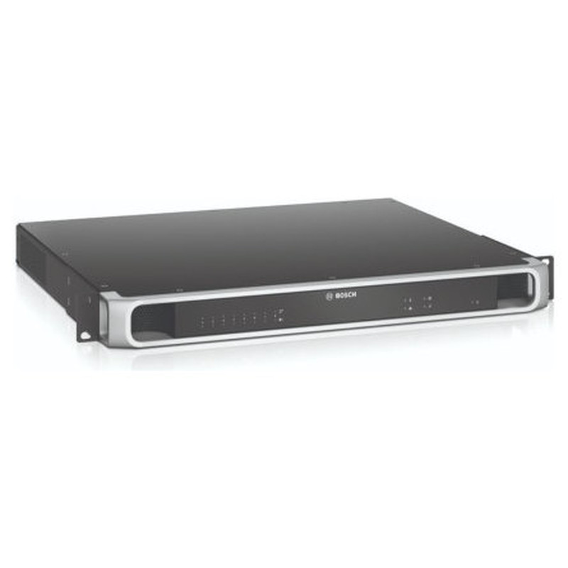 Amplificador, 600W 8 canales | Sistema de sonido Bosch - PRA-AD608Amplificador de potencia de 600 W, 8 canales, conectado a la red, alimentado por CC, con canal de repuesto incorporado y funciones DSP.