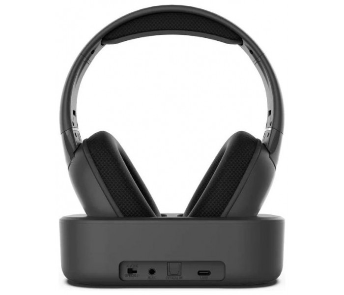 Headphones para TV con conectividad RF y Bluetooth. Permite conexión a la televisión por cable óptico o jack 3.5MM, lo que lo hace compatible con 100% de televisores del mercado. La base de carga y las almohadillas transpirables te dan la máxima facilidad y comodidad de uso.