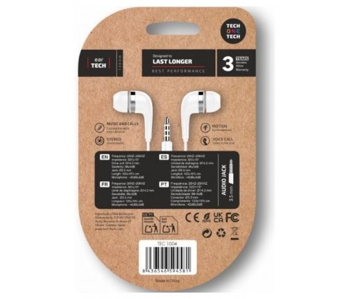 Auriculares Intrauditivos Tech One Tech soft earTECH TEC1004/ con Micrófono/ Jack 3.5/ Blancos