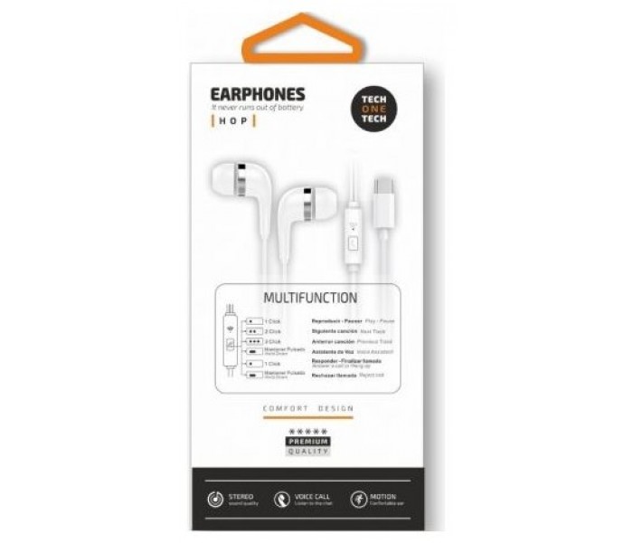 Auriculares Intrauditivos Tech One Tech earTECH TEC1304/ con Micrófono/ USB Tipo-C/ Blancos