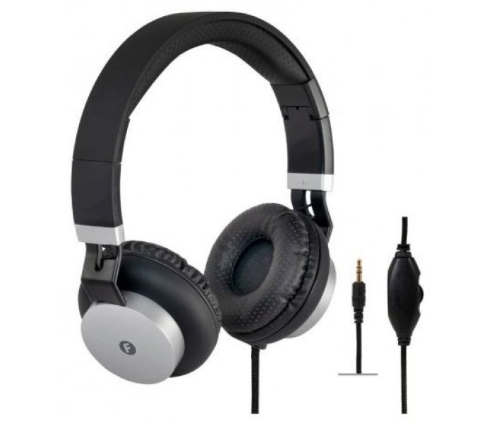 Cable extraíble de 5 m con recubrimiento textil y control de volumen. Se conecta a los auriculares mediante conector jack 3"5 mm estéreo.