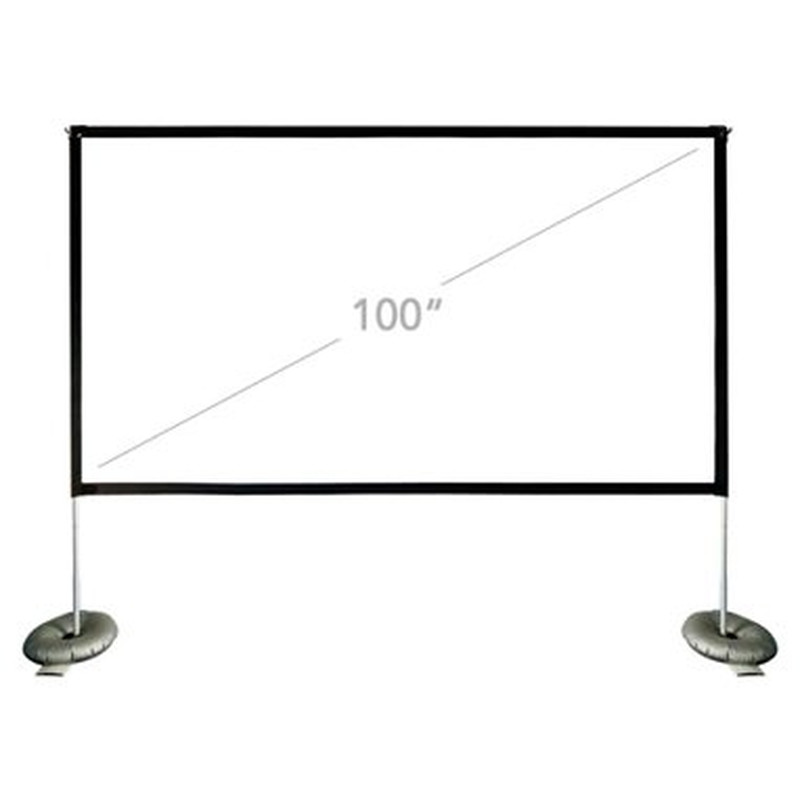 | Características | - Área visible de 100" (221,4 x 124,5 cm) - Formato: panorámico 16:9 - Factor de ganancia: 1,1 - Ángulo de visión: 120º - Ideal para proyectar vídeo y fotografías - Bordes negros perimetrales de 5 cm - Apta para interiores y exteriores - Tela elástica de poliéster resistente a las arrugas, plegable y lavable - Ideal para cualquier tipo de proyector, SVGA, XGA, 3D, HD, Full HD y 4K - Temperatura de trabajo: -20ºC ~ +60ºC - Estructura ligera y desmontable de aluminio - Medida desmontada en bolsa de transporte: 83 x 17 x 9 cm - Peso total: 3,6 kg - Incluye bolsa de transporte, cuerdas, estacas y pesos (bolsas de agua) |