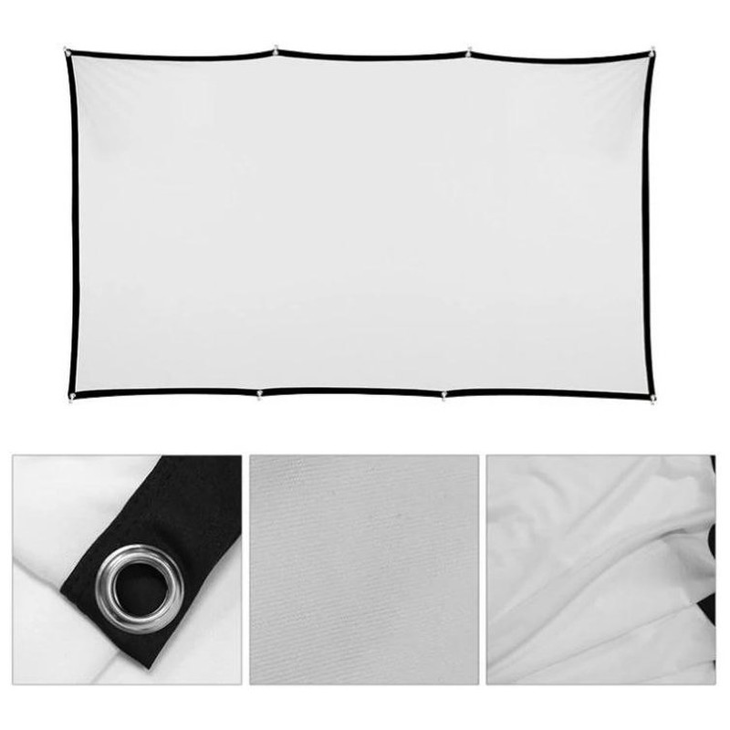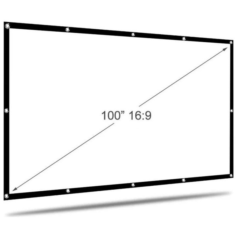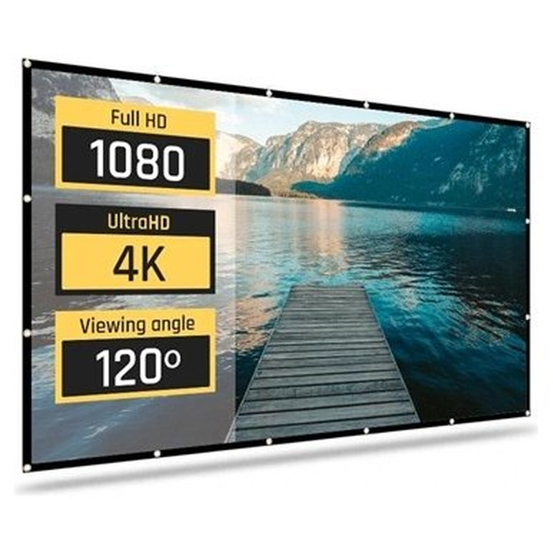 | Características | - Área visible de 100" (221 x 124 cm) - Formato: panorámico 16:9 - 12 ollaos - Factor de ganancia: 1,1 - Ángulo de visión: 120º - Ideal para proyectar vídeo y fotografías - Bordes negros perimetrales de 3 cm - Apta para interiores - Tela elástica de poliéster resistente a las arrugas, plegable y lavable - Ideal para cualquier tipo de proyector, SVGA, XGA, 3D, HD, Full HD y 4K - Temperatura de trabajo: -20ºC ~ +60ºC - Medida plegada en bolsa: 36 x 29 x 5 cm - Peso total: 700 g - Incluye 4 cuerdas de 1 metro de longitud y set de 15 colgadores |