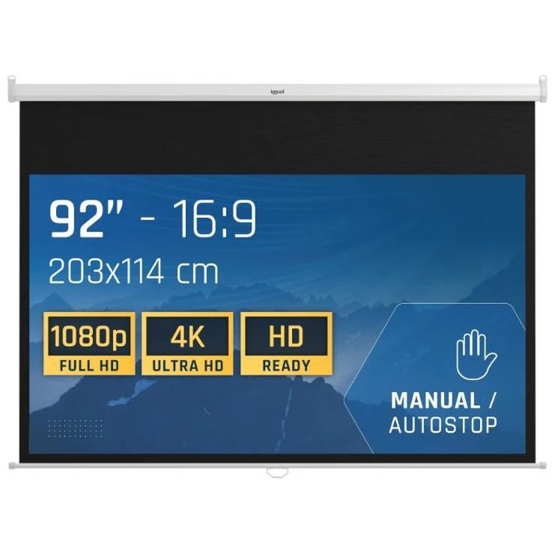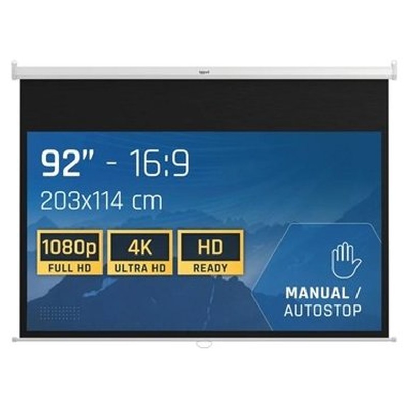 La pantalla manual PSIMS203 de iggual, con formato panorámico 16:9 y tamaño de 203x114 cm, está pensada para quienes buscan una solución práctica y efectiva para presentaciones. Su superficie de 4 capas garantiza imágenes con brillo y contraste mejorados, para una visualización clara y detallada. El sistema manual con mecanismo autostop permite un manejo sencillo y seguro, ideal para espacios educativos, oficinas o salas de reuniones. Además, su diseño se adapta a una amplia variedad de proyectores, asegurando siempre una proyección óptima.