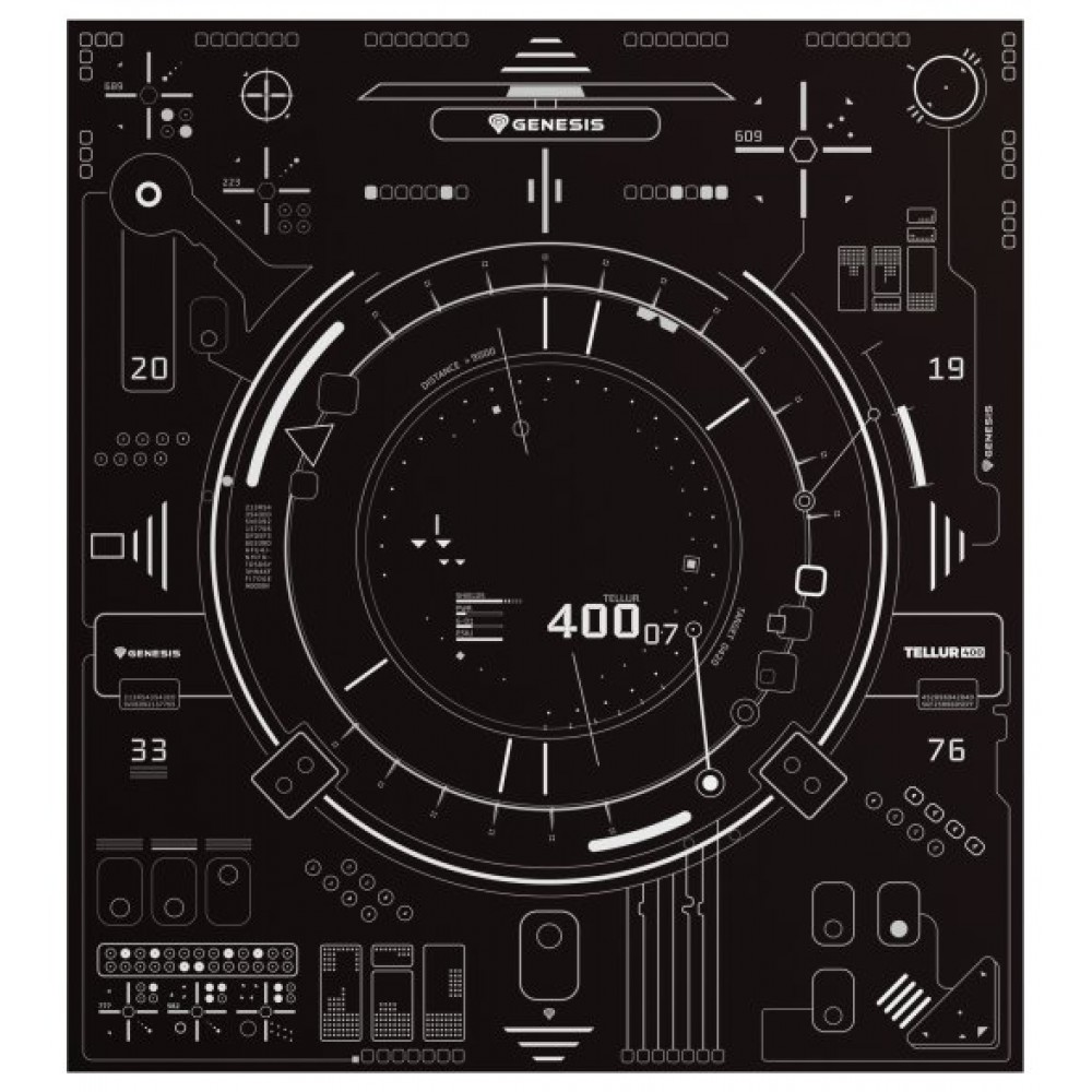 GENESIS Tellur 400 Square HUD. Tipo de producto: Alfombra para silla, Color del producto: Negro, Blanco, Material: Tela, Caucho. Ancho: 1000 mm, Profundidad: 1100 mm. Cantidad por paquete: 1 pieza(s)