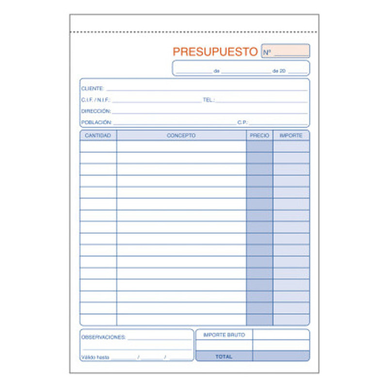 TALONARIO 50 JUEGOS PRESUPUESTOS 4º NATURAL DUPLICADO CON IGIC DOHE 50090DI (Espera 4 dias)