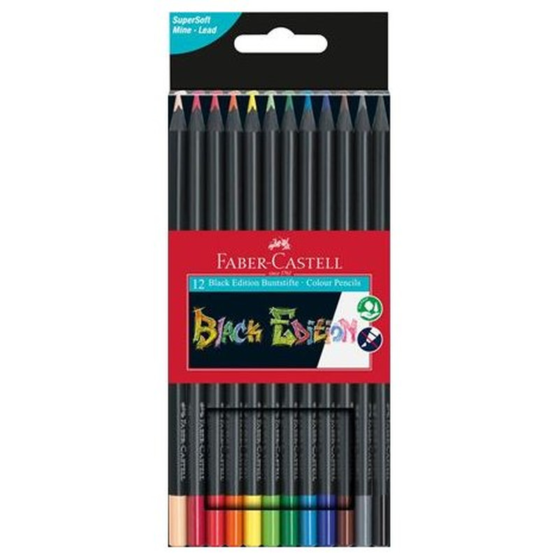 ESTUCHE 12 LÁPICES DE COLORES BLACK EDITION. FABER CASTELL 116412 (Espera 4 dias)