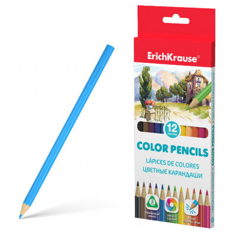 Lápices de colores ergonómicos triangulares ErichKrause® hechos de la madera seleccionada con una mina superbrillante. La impregnación especial de la madera y el encolado sólido del plomo garantizan una alta resistencia al impacto. La madera blanda y la perfecta alineación de la mina garantizan un afilado fácil con un consumo de lápiz económico. El lápiz de 3 mm de diámetro dibuja suavemente, no raya el papel y no se desmorona. El certificado de calidad europeo (CE) garantiza la ausencia de sustancias tóxicas.