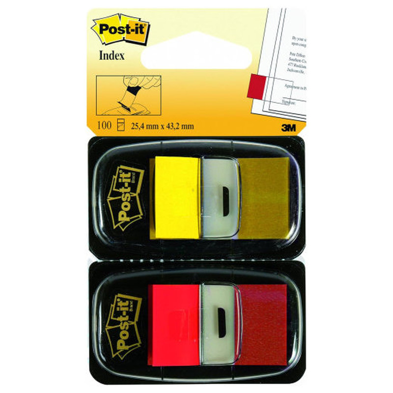 PACK 2 DISPENSADORES X 50 MARCADORES INDEX 25,4X43,2MM COLORES ROJO/AMARILLO 680-RY2 POST-IT 7000052571