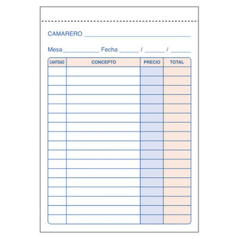 TALONARIO 50 JUEGOS CAMAREROS 8º NATURAL DUPLICADO DOHE 50088D (Espera 4 dias)
