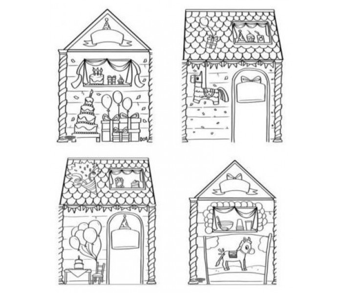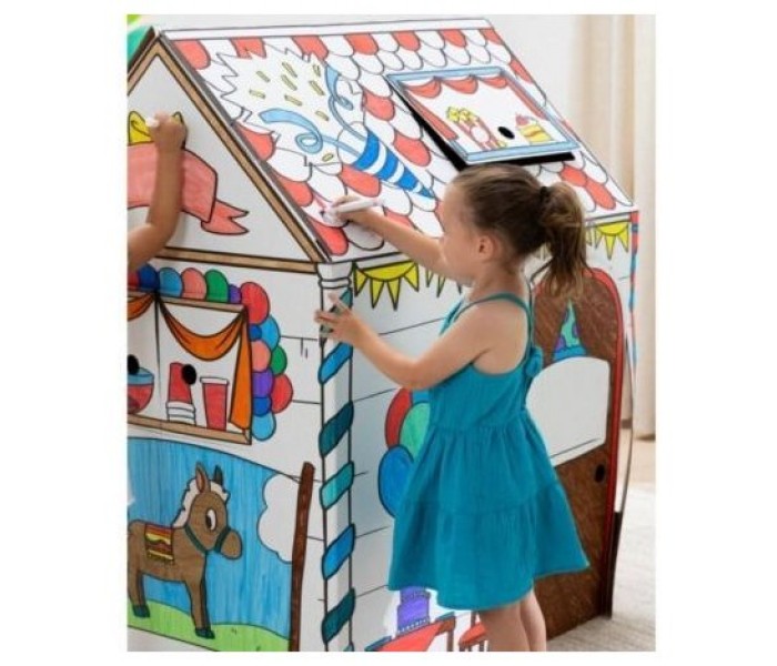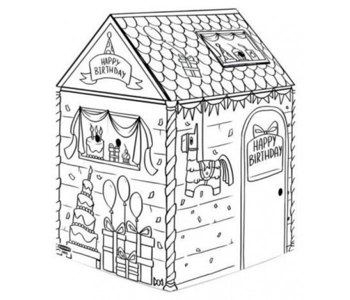 Casa "Cumpleaños" para pintar, fabricada en cartón ondulado