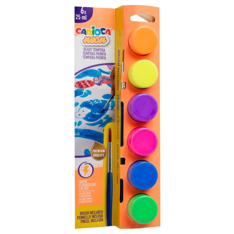 CAJA 6 BOTES DE TÉMPERA CON PINCEL NEON CARIOCA 40486
