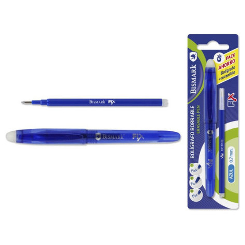 BLÍSTER BOLIGRAFO BORRABLE C/CAPUCHON+1 RECAMBIO AZUL BISMARK 329570