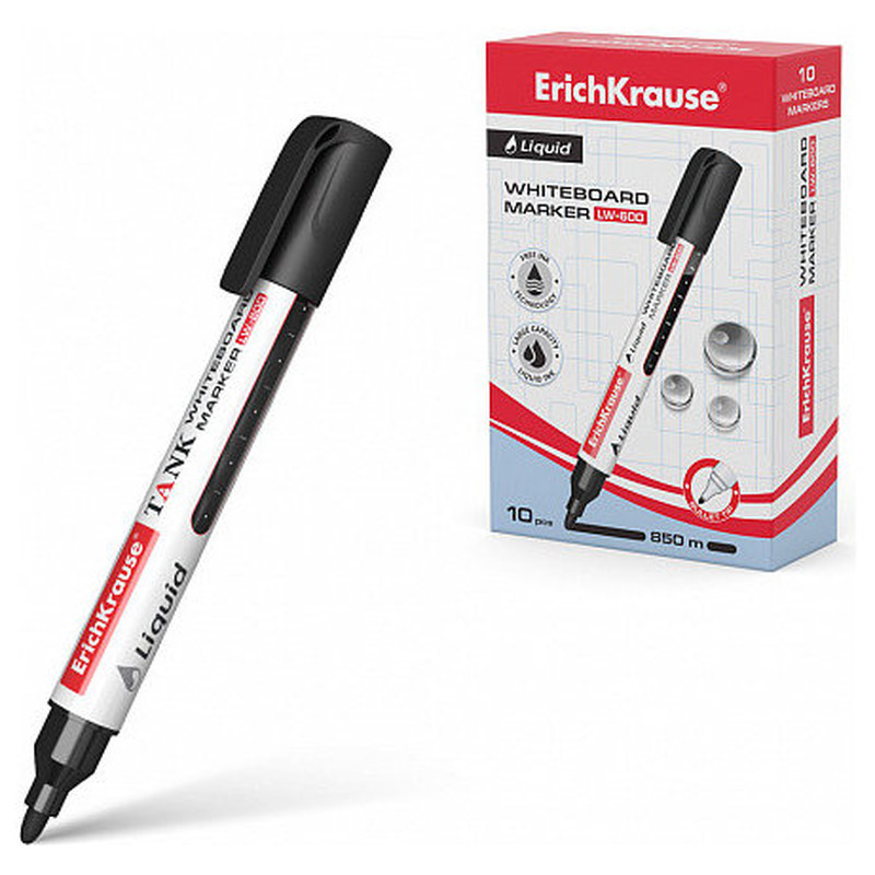 MARCADOR PIZARRA BLANCA CON TINTA LÍQUIDA LIQUID LW-600, TINTA COLOR NEGRO ERICH KRAUSE 48774 (MIN10) (Espera 4 dias)