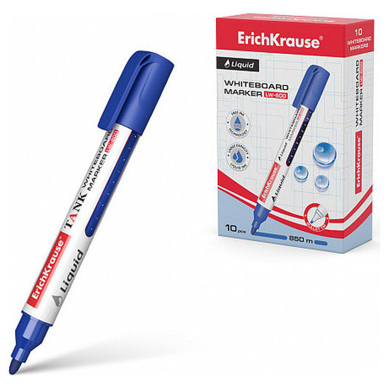 MARCADOR PIZARRA BLANCA CON TINTA LÍQUIDA LIQUID LW-600, TINTA COLOR AZUL ERICH KRAUSE 48775 (MIN10) (Espera 4 dias)
