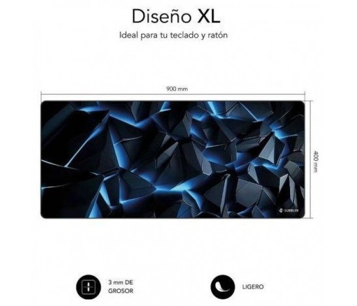 SUBBLIM Blue Obsidian XL Mouse Pad 900×400×3 mmAlfombrilla Gaming XXL con Base de Goma Antideslizante, Bordes Cosidos, Superficie Micro-Texturizada HD, Impermeable y Lavable para Teclado y Ratón.
