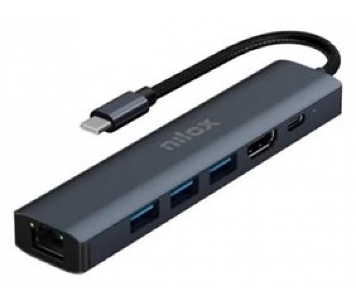 Características | - Material: Aluminio - Velocidad de transferencia de datos: 1000 Mbit/s Puertos e Interfaces - Conector de acoplamiento: USB Tipo C - 3 x puertos tipo A USB 3.2 Gen 1 (3.1 Gen 1) - 1 x puertos USB Tipo C - Salida de audio - 1 x puerto HDMI - 1 x puerto Ethernet LAN (RJ-45) Dimensiones y peso - 28 x 127 x 14 mm - Longitud de cable: 0,135 m - 56 g |