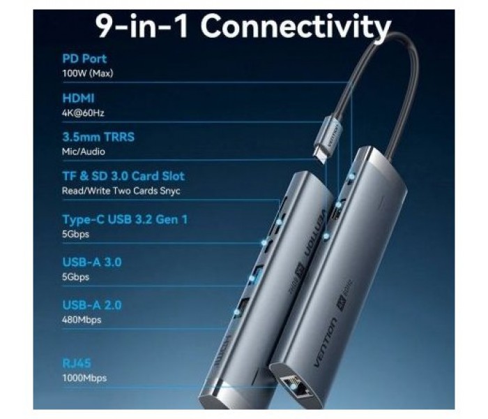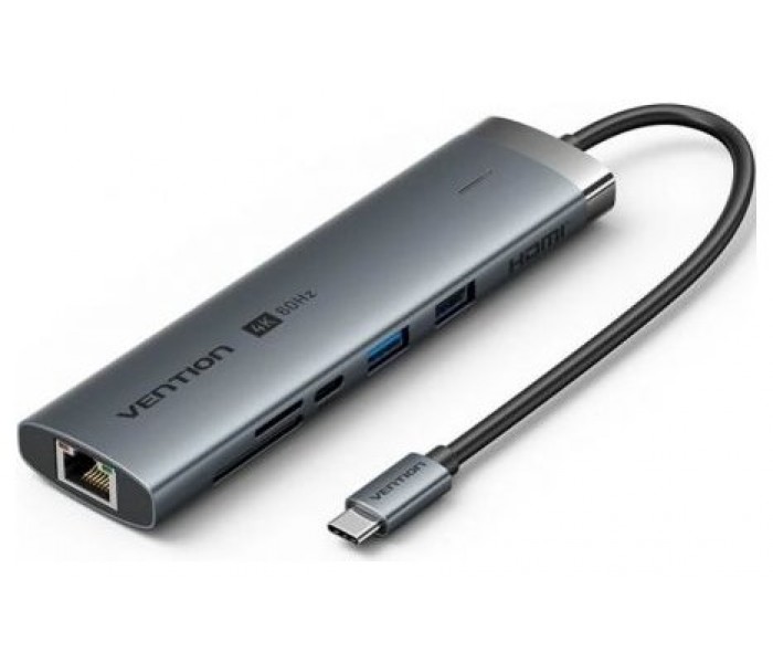 Hub USB Tipo-C 3.2 Vention TGVHB/ 2xUSB/ 1xUSB Tipo-C PD/ 1xUSB Tipo-C/ 1xRJ45/ 1xLector de Tarjetas/ 1xJack 3.5mm/ 1xHDMI/ 15cm