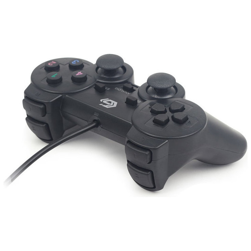 Gembird JPD-UDV-01. Tipo de dispositivo: Gamepad, Plataformas de juego soportadas: PC, Botones de función control para gaming: Cruceta. Tecnología de conectividad: Alámbrico, Interfaz del dispositivo: USB 2.0. Color del producto: Negro, Longitud de cable: 1,8 m. Sistema operativo Windows soportado: Windows 10 Education, Windows 10 Education x64, Windows 10 Enterprise, Windows 10 Enterprise x64,.... Peso: 225 g
