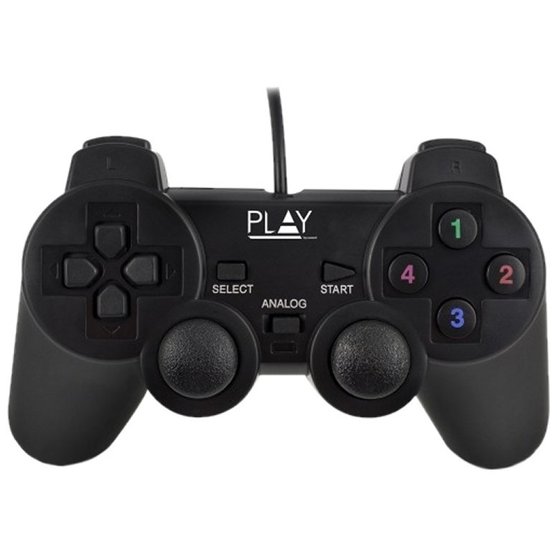 Utilice el Controlador USB para juegos con cable Play PL3330 para jugar en su ordenador portátil y sobremesa. El Controlador para juegos con cable Play PL3330 está equipado con 13 botones, 2 mandos verticales analógicos y control direccional de 8 vías. Ideal para juegos de carreras, de deportes y de rol. Disfrute de horas de juego y diversión gracias a su cómodo agarre. El Controlador para juegos con cable Play PL3330 es un dispositivo plug and play, por lo que solo deberá enchufar el cable USB en su ordenador portátil o sobremesa, y ya podrá comenzar a jugar al instante.
