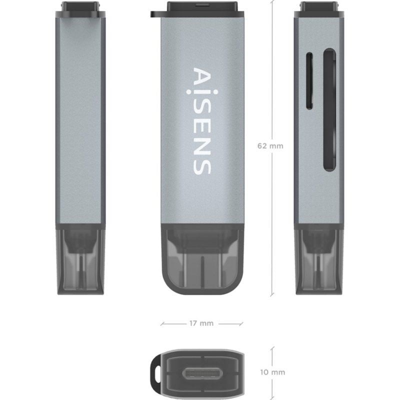 Lector de Tarjetas Externo Aisens ASCR-2A09-GR/ USB 3.1