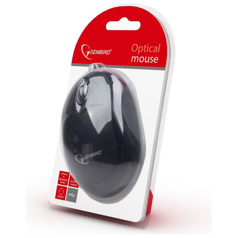 Gembird MUS-U-01. Interfaz del dispositivo: USB, Tipo de botones: Pressed buttons, Tipo de desplazamiento: Rueda. Factor de forma: Ambidextro, Color del producto: Negro, País de origen: China. Longitud de cable: 1,25 m. Fuente de energía: Cable. Ancho: 94 mm, Profundidad: 55 mm, Altura: 33 mm