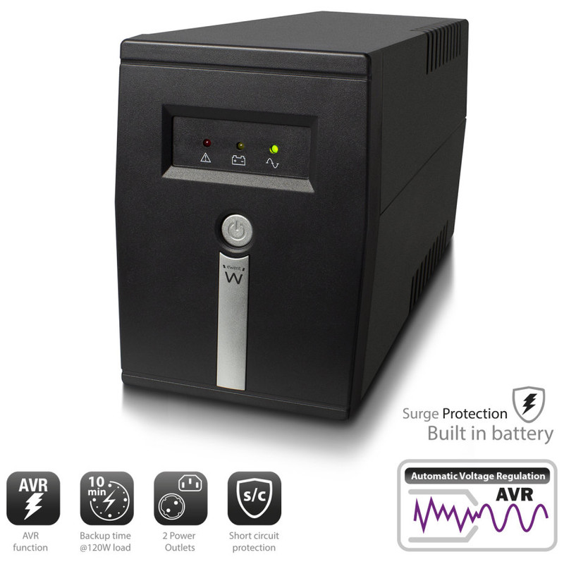 El SAI Línea Interactiva de 600 W EW3946 tiene una salida IEC C13 y un conector UE hembra de tipo F para proteger su PC y archivos valiosos contra fallos y sobrecargas de energía. La batería incorporada del SAI Línea Interactiva le permite guardar sus archivos en aproximadamente 10 minutos a una carga de 120 W. La tensión de salida se mantendrá estable gracias a la función AVR.