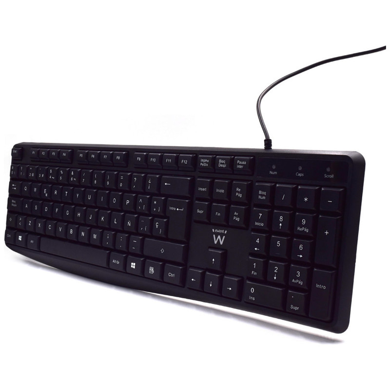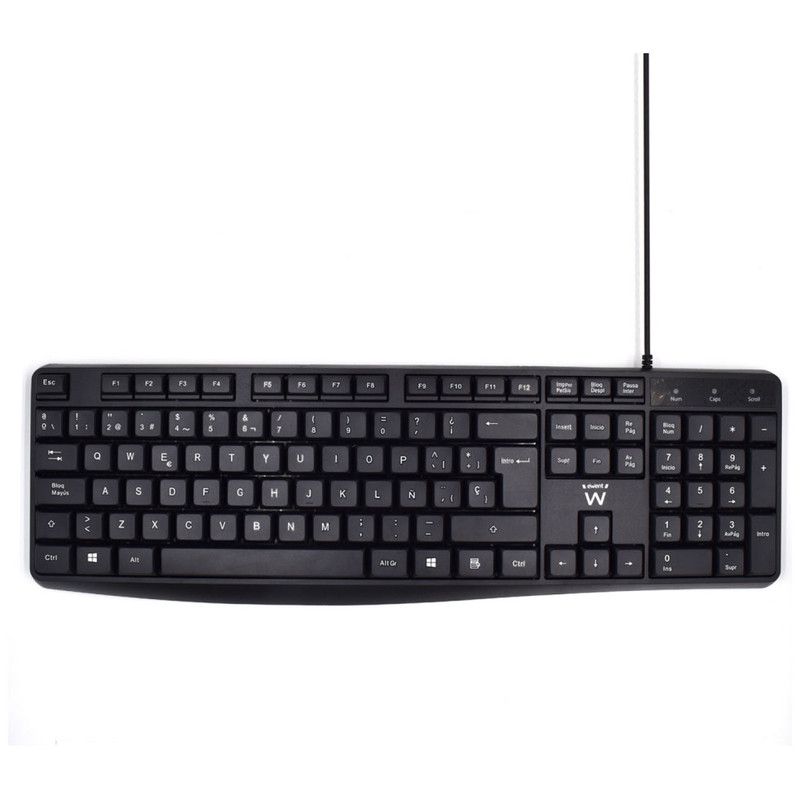 | Características | - Diseño: QWERTY ES - Número de llaves: 104 - Tipo de llave: perfil bajo y silencioso - LED de estado: Numlock, Capslock, Scroll - Longitud del cable: 1,35 m - Dimensión: 440x24x138mm |