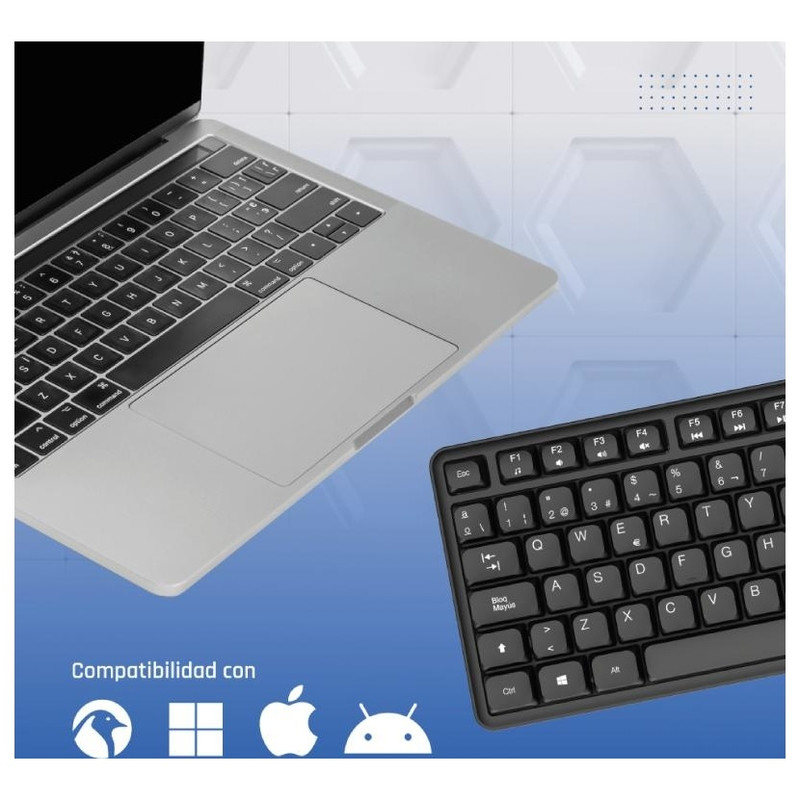 Diseñado para durar, es resistente a salpicaduras, cuenta con cable de 1,4 metros y funciona con Plug & Play: solo conecta y empieza a trabajar. Compatible con Windows, macOS, Android y Linux, es la solución práctica y fiable para cualquier entorno profesional.