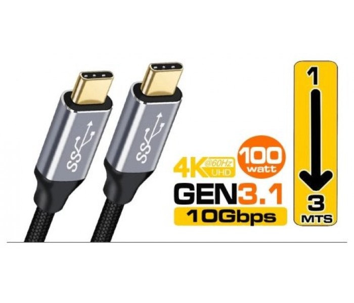 Cable USB 3.2 Gen2 C - C (thunderboldt) 100W 10 Gbps 4K 60Hz