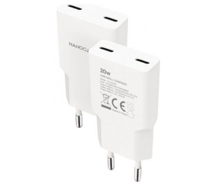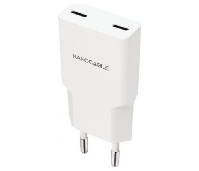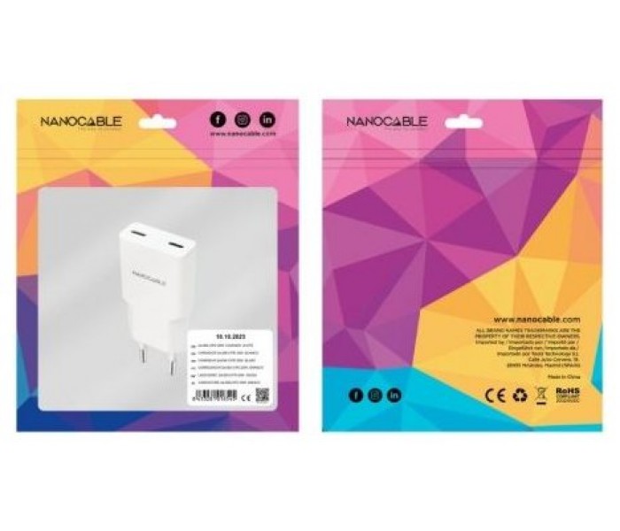 Cargador de Pared Nanocable 10.10.2023/ 2xUSB Tipo-C/ 20W/ Blanco