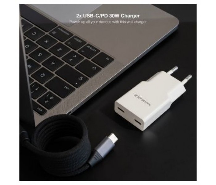 Cargador de Pared Nanocable 10.10.2029/ 2xUSB Tipo-C/ 30W/ Blanco