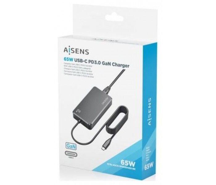 AISENS - CARGADOR DE SOBREMESA GaN 65W PD3.0 1XUSB-C 1.8M, NEGRO