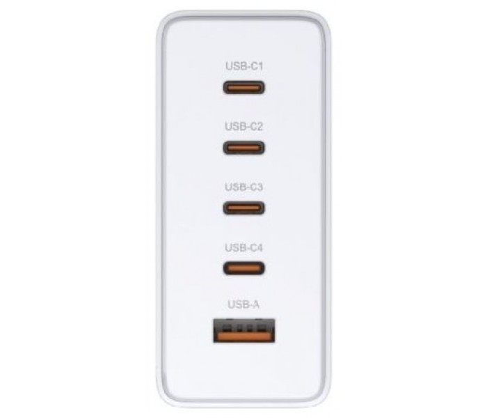 - Cinco puertos USB-C/USB-A: Cuenta con 4 puertos USB-C y 1 puerto USB-A para cargar 5 dispositivos simultáneamente