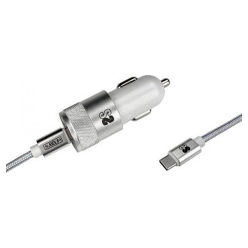 cargador de coche dual pd20w + qc3.0 + c to c - lightning plateado