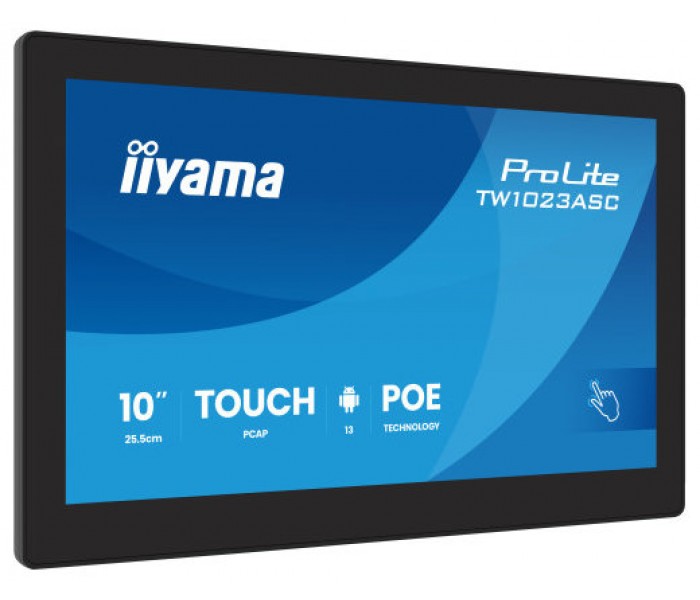IIYAMA 10,1" PANEL-PC WITH ANDROID 13+GMS, SOC QUAD-CORE RK3568 4GB, STORAGE 32GB, PCAP 10-POINTS TOUCH, 1280X800, IPS PANEL, SPEAKERS, POE, WIFI, BT5.2, SD SLOT, HDMI-OUT, 385CD/M², CABLE COVER, IISIGNAGE2 SUPPORTED (TW1023ASC-B3P)