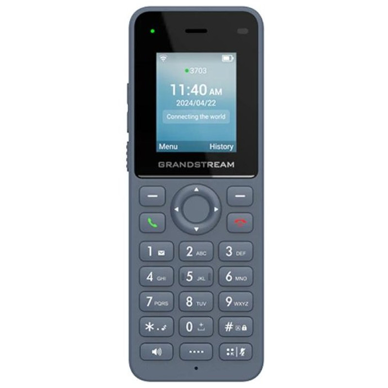 | Características | - 3 cuentas SIP, 3 líneas - Diseño de voz HD y micrófono dual con tecnología AEC y Noise Shield - Botón configurable para pulsar para hablar - Puerto USB tipo C (admite carga rápida) - Acelerómetro, botón de emergencia (pendiente) - Capacidad de la batería: Batería recargable Iones de litio de 3000 mAh - Duración de la batería: 12 horas de conversación 240 horas en espera - Bluetooth - Wi-Fi 6 802.11 a/b/g/n/ac/ax (2,4 GHz y 5 GHz) integrado de doble banda, compatible con 802.11k/r/v [WEP, WPA, WPA2, WPA3 (personal)] - Gestión de dispositivos: GDMS |